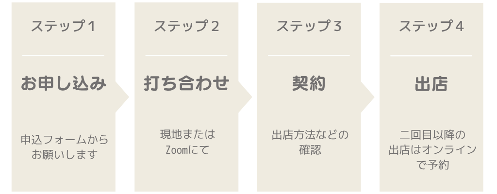 西口COLORS まちに彩りを 西口COLORSとは JR千葉駅西口、WESTRIO2 (ウェストリオ2)を起点に、新しいまちづくりを目指します。 ・個性を生かして自分らしく活躍出来る まち ・チャレンジ出来る まち ・つながりのある まちづくり千葉駅西口エリアの新たなコミュニティ形成や魅力・賑わい創出に向けた取り組みを行っていきます。ワゴン出店、シェアキッチン出店、キッチンカー出店、イベント開催、広告・ポスター掲示等、様々なかたちでご利用いただけます。・WESTRIO(ウェストリオ)と、WESTRIO2(ウェストリオ2)について (千葉市)・ウェストリオ2(主に低層部)のコンセプトについて (千葉市)・千葉駅西口地区の再開発について(千葉市) 千葉駅、千葉駅西口の情報 千葉駅は、東京方面からの鉄道の終点であり、千葉県内へ広がる各路線が集まるターミナル駅です。また、千葉都市モノレールや京成電鉄、千葉市内の各方面へ行き来するバスなど、多くの方の往来があります。 乗り入れ路線 JR東日本 ・総武線快速 ・中央・総武線各停 ・総武本線 ・内房線 ・外房線 ・成田線千葉都市モノレール京成電鉄(京成千葉駅)バス ・京成バス ・小湊鉄道等 乗降客数 1日の乗降客数JR千葉駅: 215,600人京成千葉駅: 29,400人モノレール千葉駅: 26,800人出典:千葉市 周辺商業施設 ウェストリオペリエ千葉そごう千葉店センシティヨドバシHD千葉ビルシーワンミーオ 西口COLORSで出来ること JR千葉駅西口、WESTRIO2 (ウェストリオ2)の共用スペースで、ワゴン販売・イベント開催・ポスター掲出・展示など、さまざまな形でご利用いただけます。千葉駅を利用する多くの方々が行き交う、まちの玄関口。通勤・通学・お買い物など、幅広い世代が日々利用するこの場所で、あなたの“商品”や“想い”を直接届けてみませんか? 屋台・ワゴン出店JR千葉駅 西改札から歩いてい30秒。多くの人が行き交いする西口で販売してみませんか?ワゴン販売、ポップアップ出店、飲食のテイクアウト販売などの出店者を募集しています。初めての方にも出店方法の確認や出店のコツなど相談しながら進められます。詳しくはこちら イベント開催千葉駅西口 ウェストリオ2の共用部を活用して、イベントを開催してみませんか?先ずはお気軽にご相談ください。お問い合わせはこちらから 広告・ポスター掲載ウェストリオ2の壁面に、有料で広告・ポスターを掲示することができます。企業・店舗・団体・イベントなどのポスター掲示を募集しています。駅利用者や通行人など、一日を通して多くの人の目に触れるロケーションです。地域の告知からプロモーションまで、あなたのメッセージを、まちの風景の一部にしませんか?お問い合わせはこちらから シェアキッチン2025年12月オープン予定各曜日の固定枠が埋まりはじめています。お早めにお問い合わせください。飲食のポップアップ出店やテイクアウト販売、スイーツ・パン・惣菜などの製造販売、さらにはイベントやマルシェとの連動出店など、自由なスタイルで活用できるキッチンスペースです。*現在、週1回の固定枠の募集を優先しています。お問い合わせはこちらから 西口COLORSの場所 JR千葉駅西口 ウェストリオ2ビル3F 駅前連結通路千葉駅 西改札より徒歩30秒 屋台・ワゴンの出店 JR千葉駅 西口での屋台・ワゴンの出店にご興味をお持ちの方は、以下の情報をご確認ください。 出店費用 「初めて自分の商品を売ってみたい!」「これから自分のお店を持ってみたい!」新たなチャレンジをしたい個人に向けたチャレンジ割引、初めての西口出店の方にはお試し割引もご用意しています。 目的や今後の計画をお聞かせいただき、出店方法の提案もさせていただきます。 価格表はこちら 出店の流れ 西口COLORSのコンセプトや出店方法をご理解いただいてからの、契約と出店の流れとなります。出店者様の中期的な成功と、そのための私たちのサポートや連携を目的としています。 お申込みはこちらから 西口COLORS 出店カレンダー